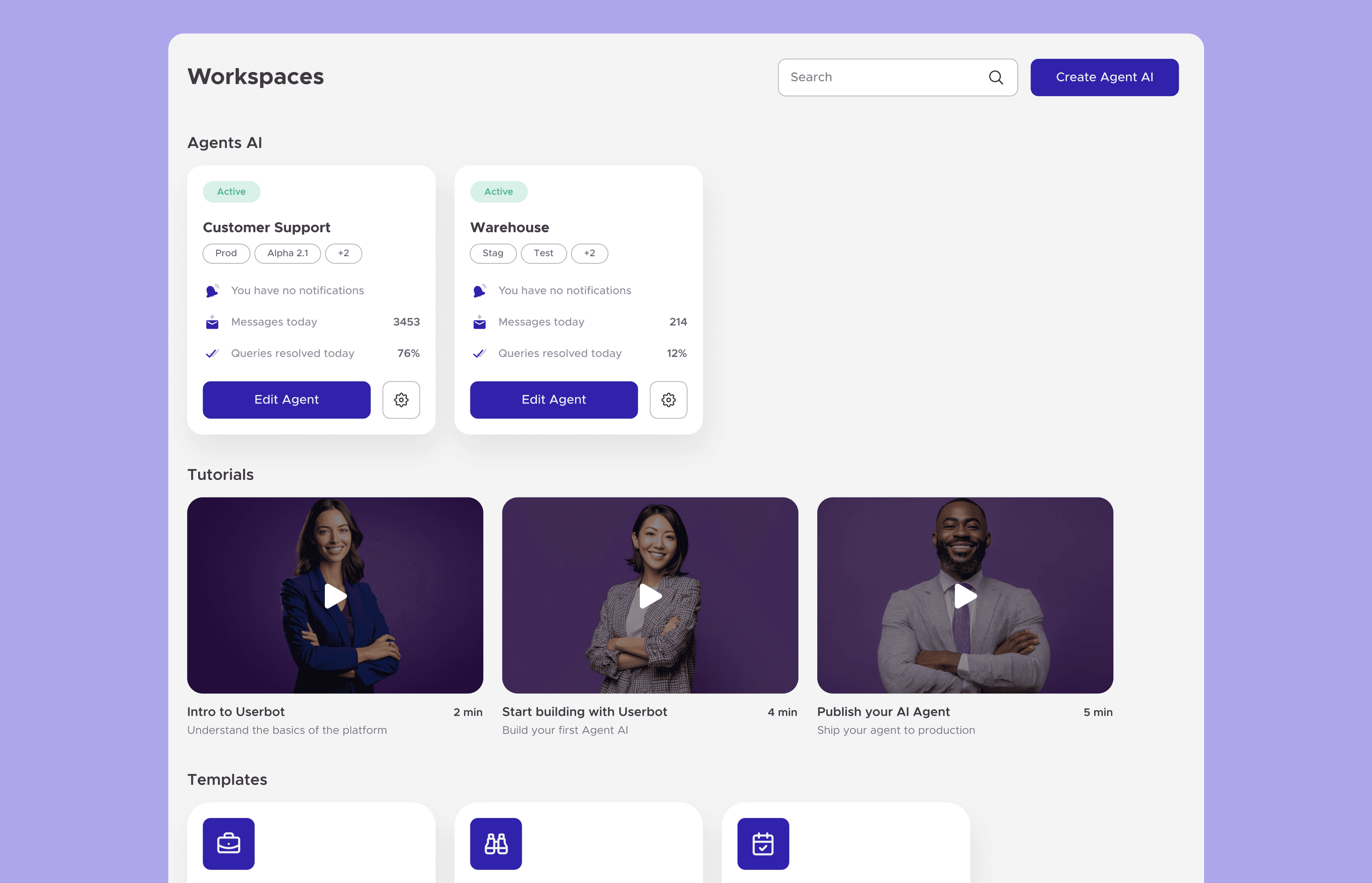 I redesigned the Workspace page, where users select and manage their bot or AI agent projects. The challenge was presenting both legacy bots and new AI agents clearly, making it easy to switch, access, and manage projects in a scalable and intuitive way.