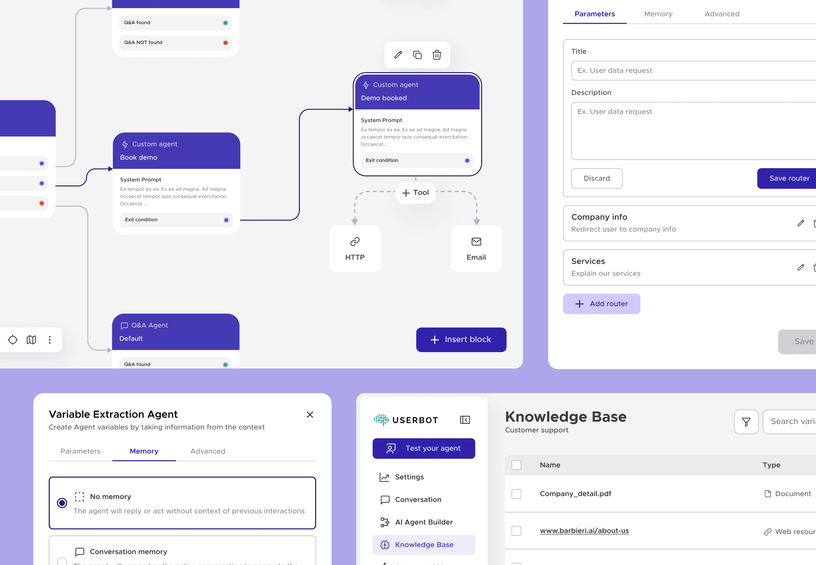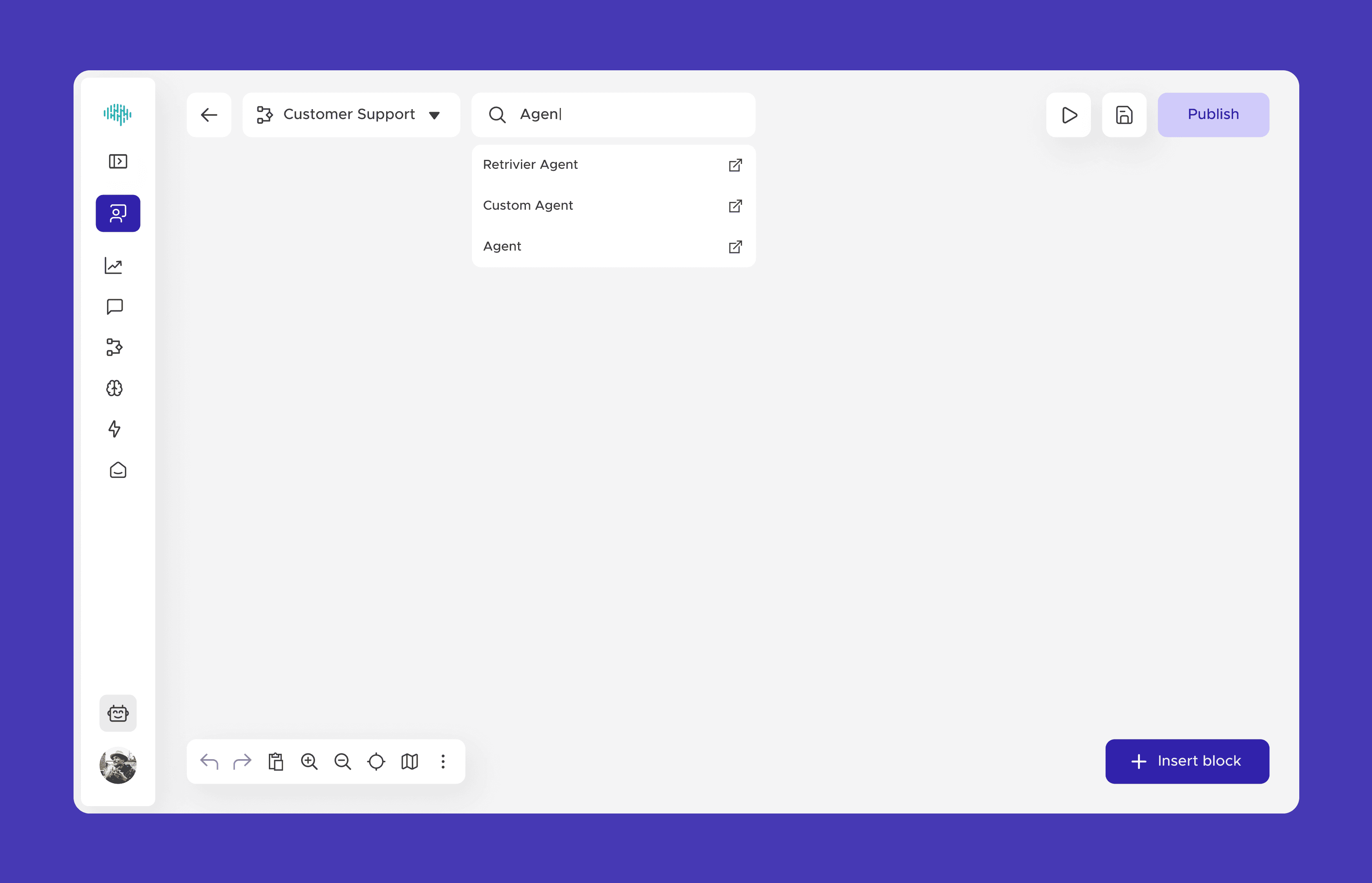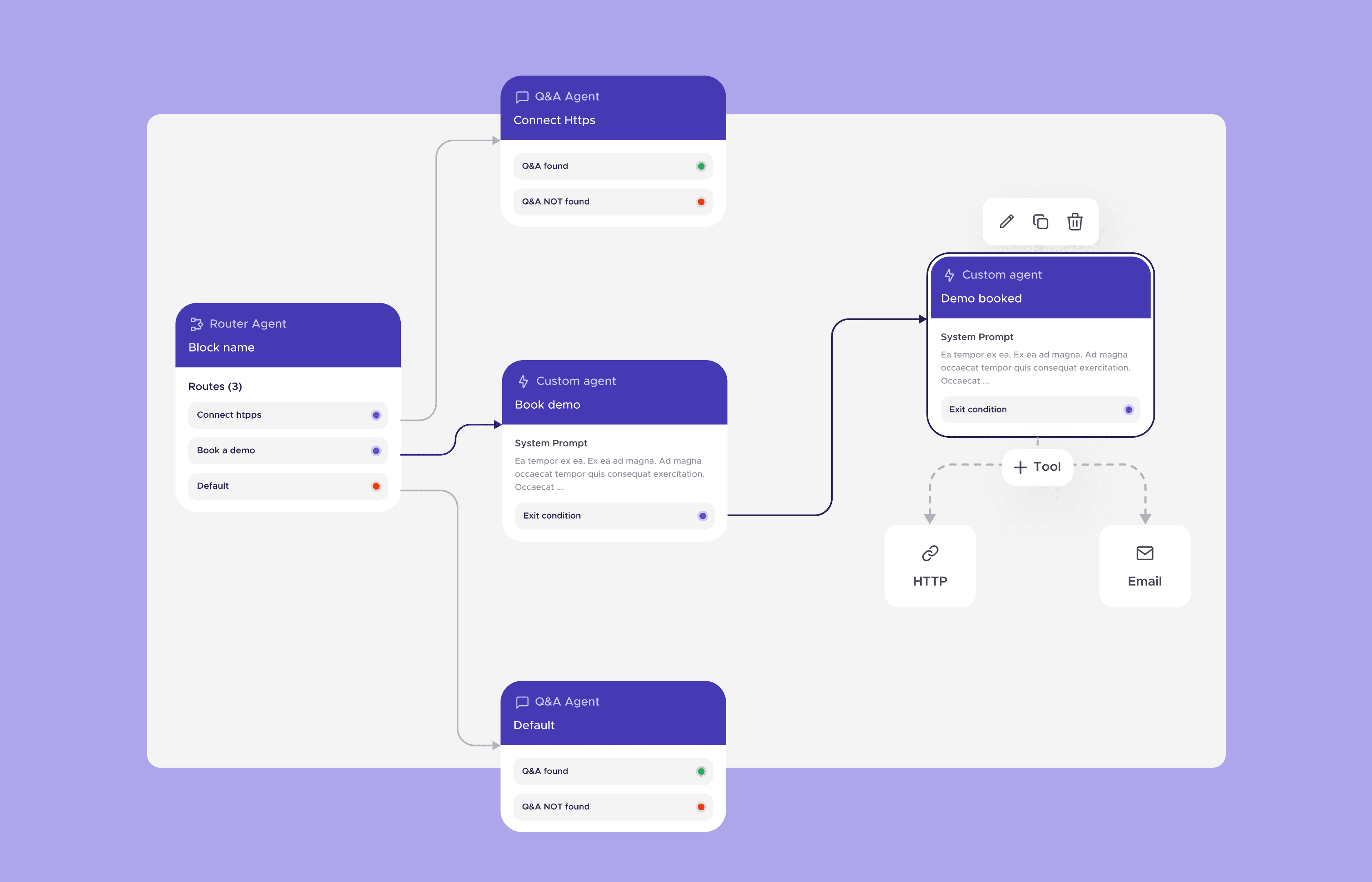 I redesigned the Flow Builder to support modular agent blocks such as routing, retrieval, Q&A, and variable extraction, and introduced a scalable “toolbox” layer of agent tools to extend specialized capabilities within workflows. The core challenge was translating abstract agent logic into clear, consistent interaction patterns, ensuring the system could handle complexity while remaining intuitive and extensible over time.